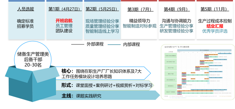 遠東于行業內率先引入精益生產”、智能制造”理念,遠東大學生產學院針對不同條線、不同崗位導入精益生產各個模塊的學習內容,舉辦有精益廠長特訓營、精益班組長特訓營、精益標桿游學項目,同時開辦了匠師項目-面向中高層管理人員、匠研項目-面向研發人員、匠英項目-面向基層管理人員、匠工項目-面向一線操作類人員。